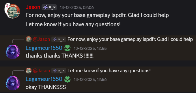 We offer free help and troubleshooting through our Discord server, where our support team is ready to assist you with LSPDFR issues and setup problems.